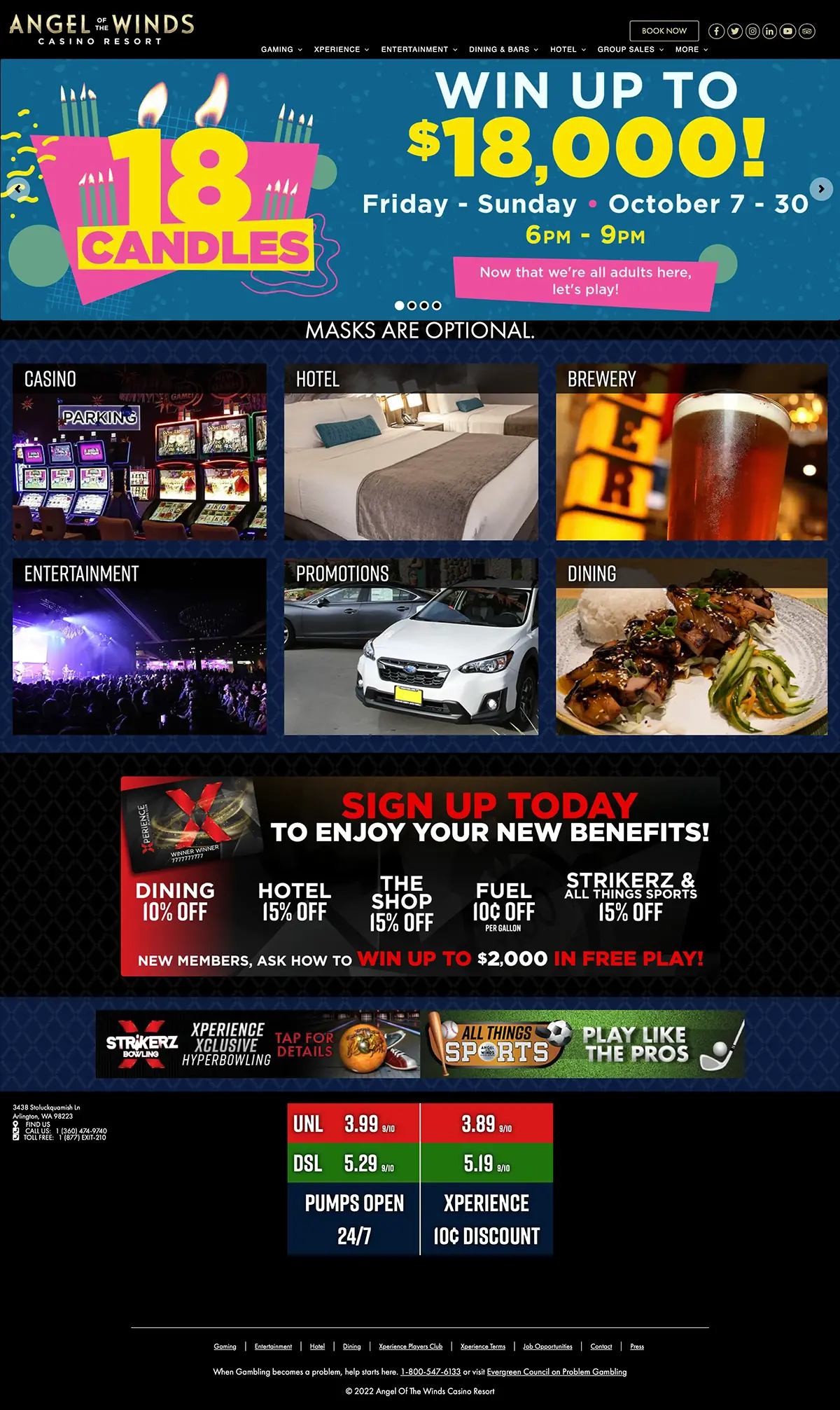 Paired with a new “Outdoor Adventure Basecamp” brand identity, Angel of the Winds Casino Resort’s website redesign in 2022 aimed to provide a literal breath of fresh air to the previous site—functional, but uninspiring in its visual execution.